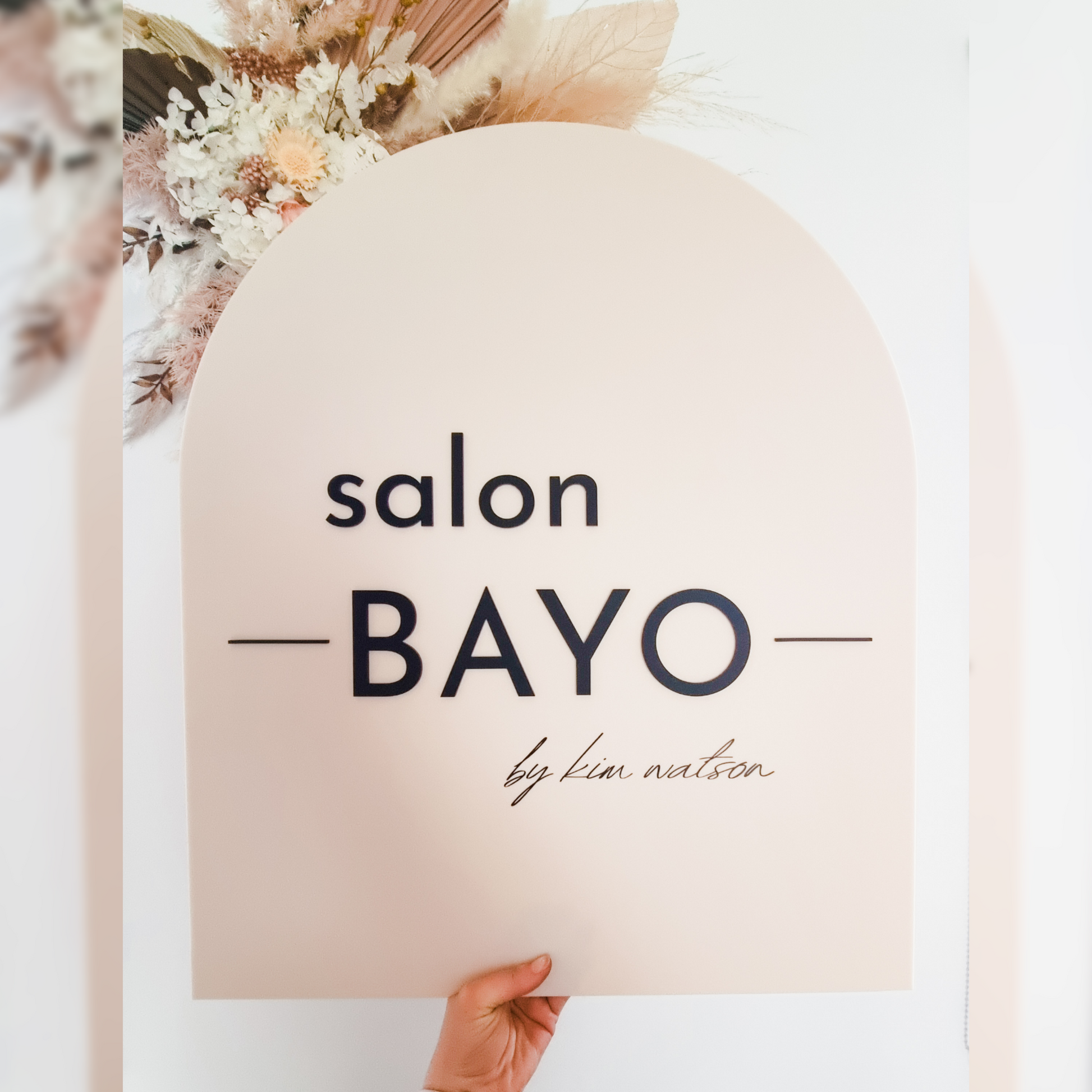 This product is a arch sign with your design cut out with acrylic and individually stuck on
