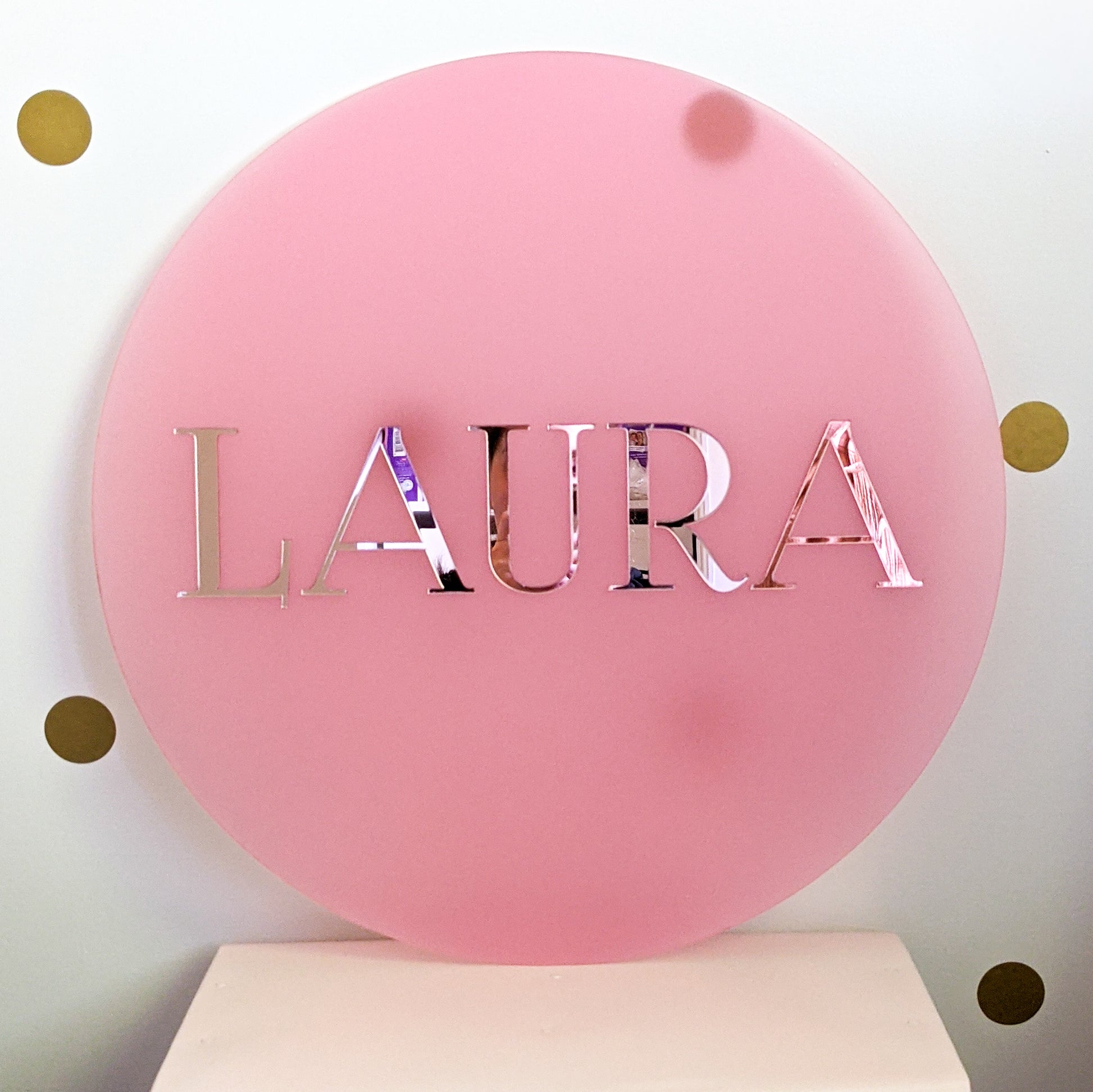 This product is a round sign with your design cut out with acrylic and individually stuck on