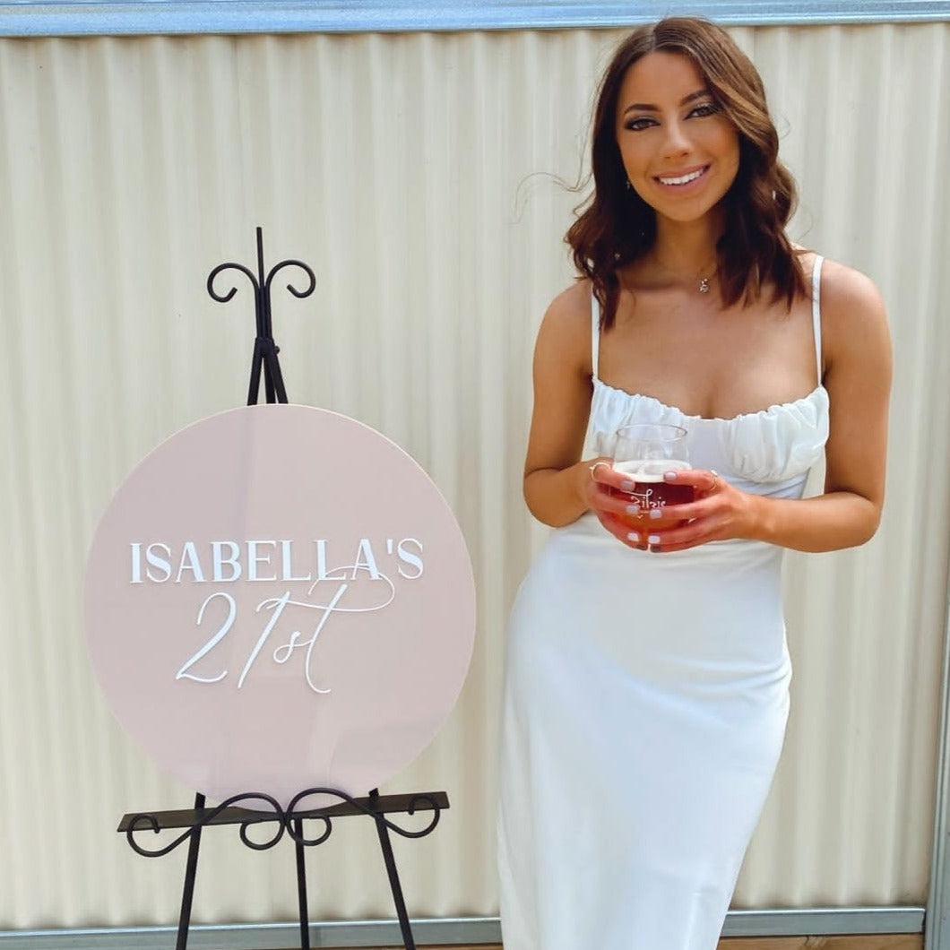 This product is a round sign with your semi custom design cut out with acrylic and individually stuck on